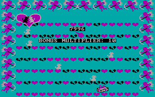 Le piattaforme sono fatte di cuoricini, ma alcuni malefici Cupido sui lati lanciano delle frecce che possono tramutare i cuori in cuori infranti, da cui si cade, e viceversa.